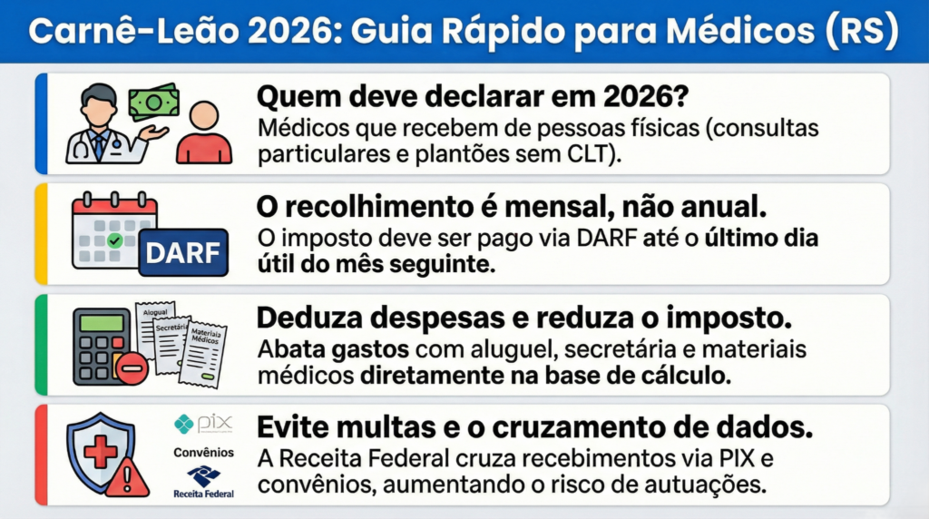 Carnê Leão para médicos no RS: como declarar corretamente em 2026